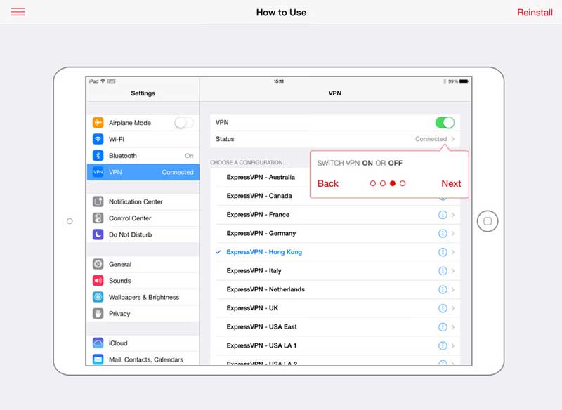 On iPad only: now you can run  ExpressVPN beside another app of your choice. Change your server locations without ever having to return to the main screen!