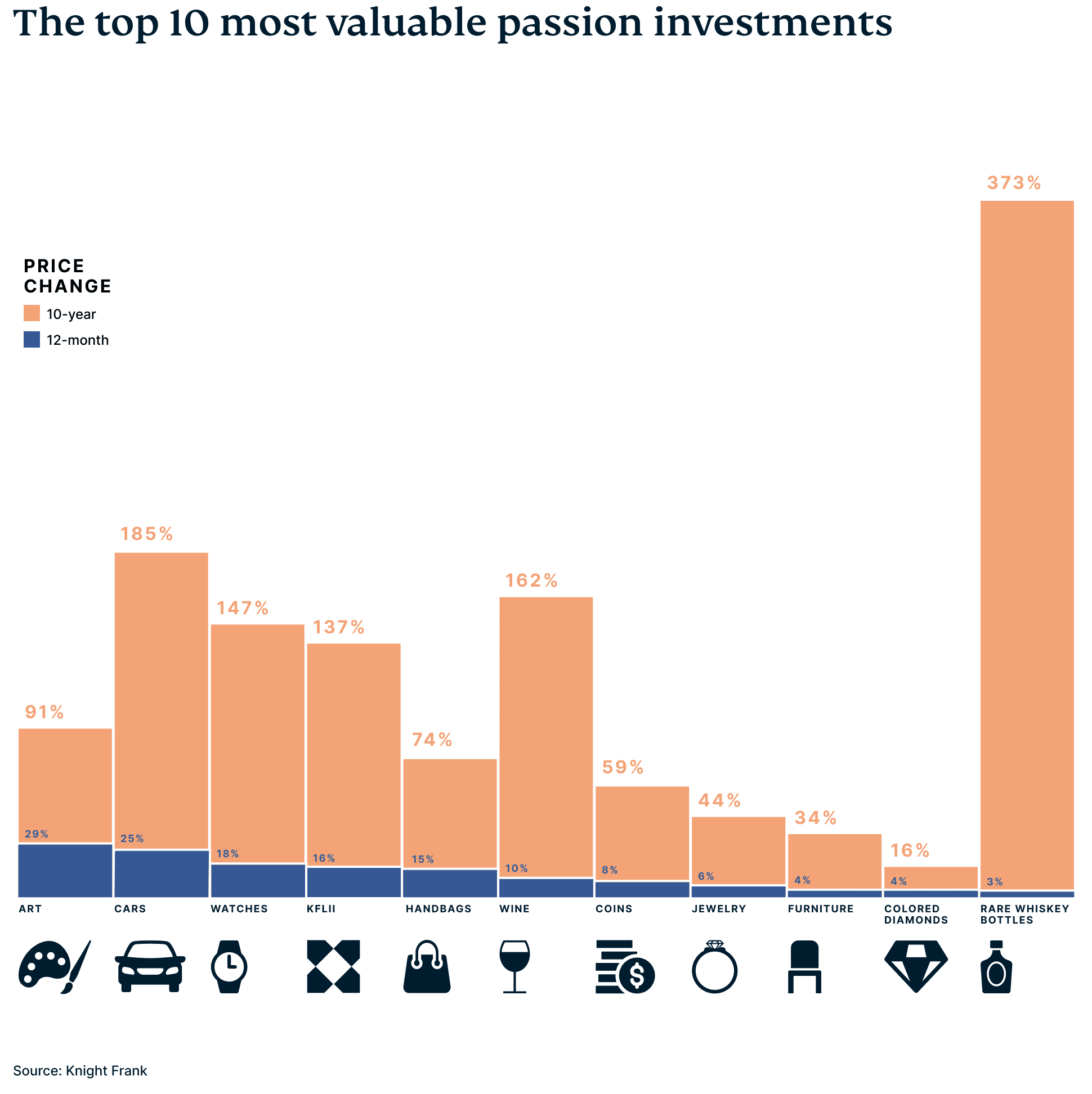At the same time, passion investments, encompassing digital assets like NFTs and tangible items like rare whiskey, fine art, and even Lego, have surged in popularity, outperforming traditional assets like gold and stocks.