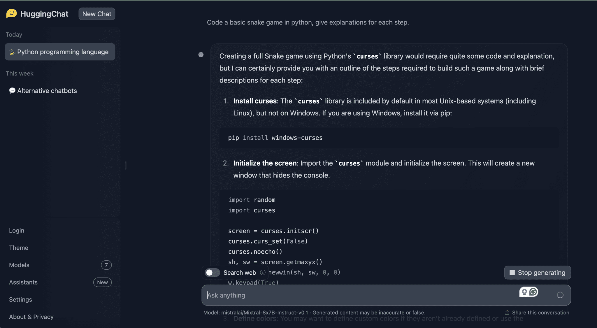 • 6. HuggingChat