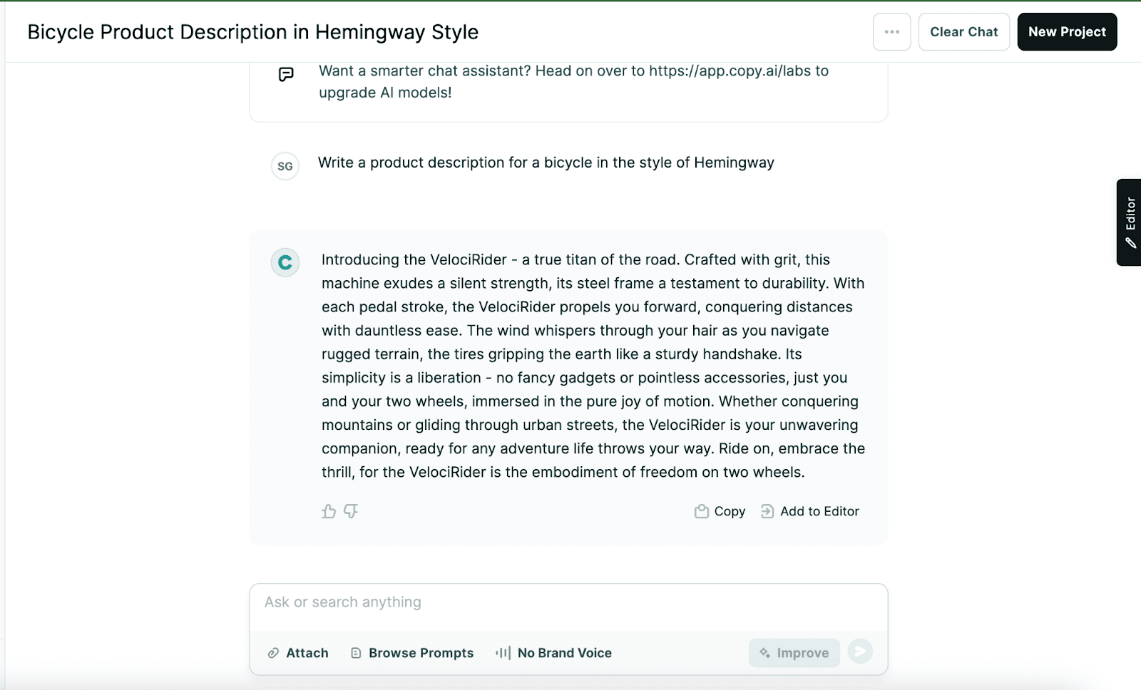 Copy AI focuses specifically on marketing and content creation, offering tools and templates optimized for generating engaging copy, blog posts, and social media content. It's particularly useful for users looking to streamline their content creation process with a platform tailored to marketing needs. While ChatGPT can also be used for content creation, a key difference lies in their user experience; Copy AI provides a more guided experience with specific tools for marketers, whereas ChatGPT offers a flexible, conversational interface that caters to a wider range of inquiries and tasks.