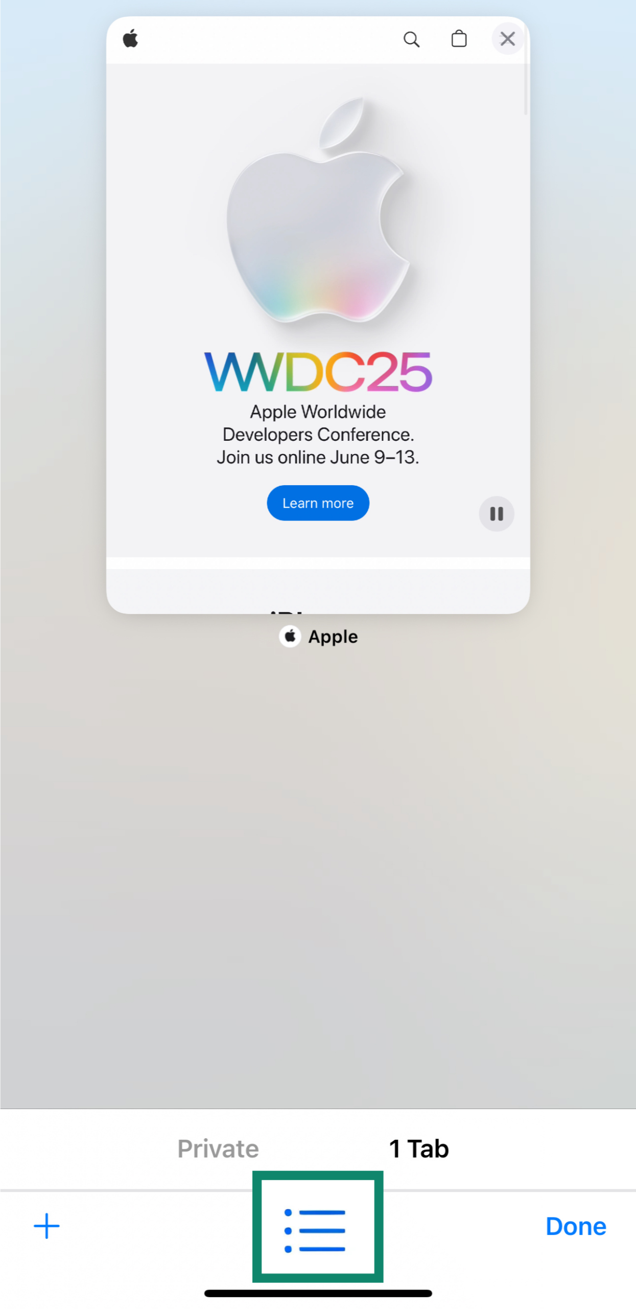 4. Tap the + button to open a new Private Browsing tab, or click Done to return to an existing one.