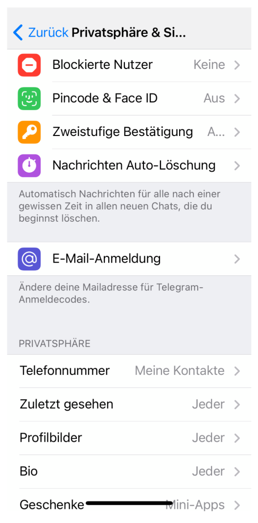 Bei Telegram können Sie steuern, wer Ihre privaten Daten sieht.