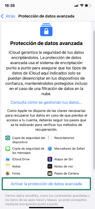 3. A continuación, pulsa en Activar protección de datos avanzada.
