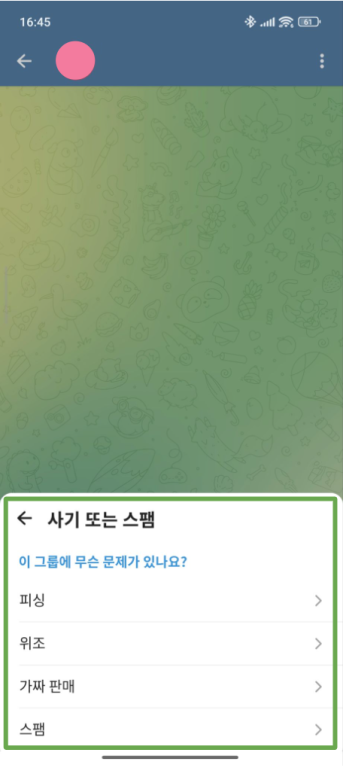 사기 사용자나 그룹을 신고하면 Telegram이 사기 계정을 찾아내고 차단하는 데 도움이 됩니다..