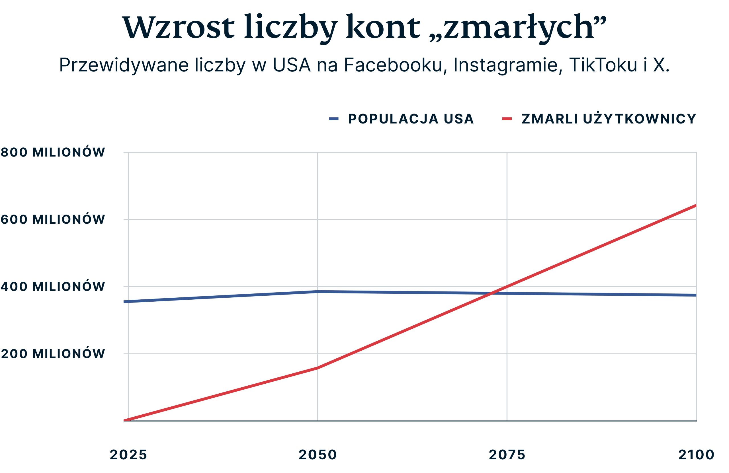 - W szczególności wyróżnia się sytuacja w Stanach Zjednoczonych, gdzie do 2100 roku spodziewamy się 659 milionów kont zmarłych, czyli prawie dwukrotnie więcej niż wynosi populacja tego kraju.