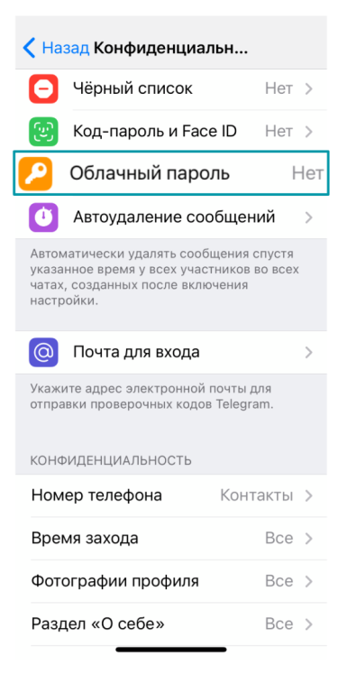 - Нажмите Облачный пароль.