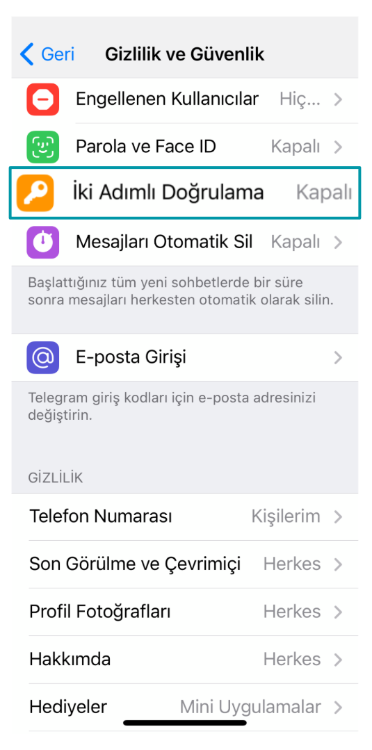 İki aşamalı doğrulama, Telegram hesabınıza ekstra bir güvenlik katmanı ekler. Şifrenizi bilen biri bile, bu ikinci kod olmadan hesabınıza erişemez.