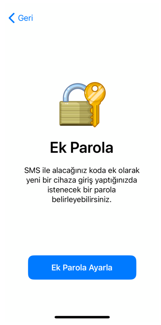 4. Ek Parola Belirle adımında belirtilen şekilde bir parola belirleyin.
