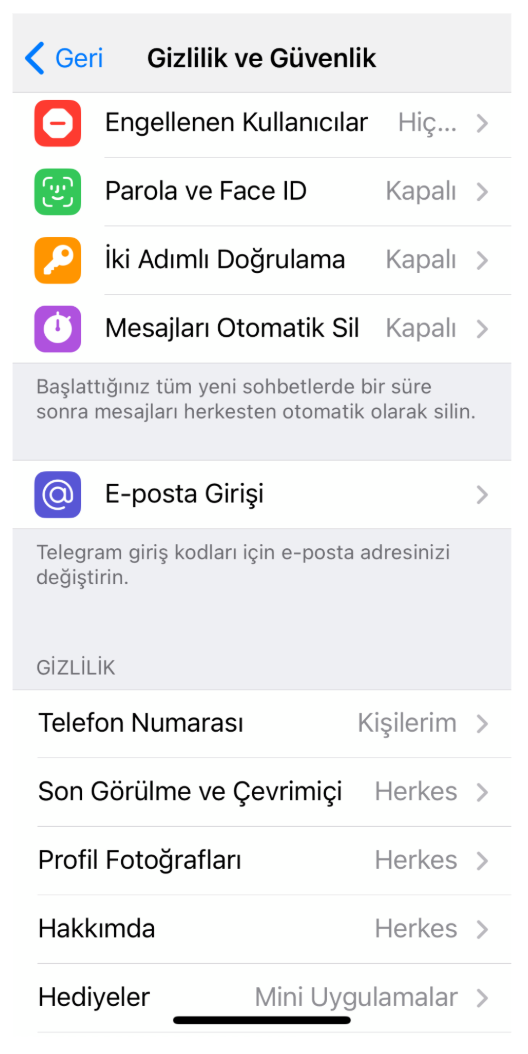 Telegram, kişisel bilgilerinizi kimlerin görebileceğini sizin belirlemenize olanak tanır.