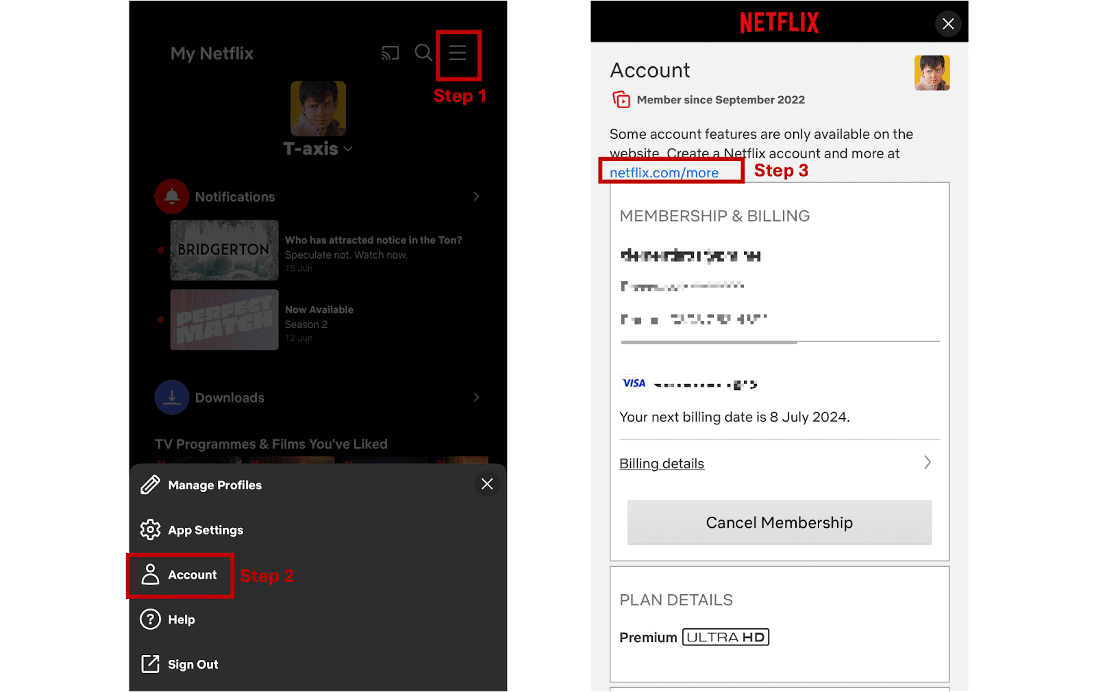 1. Sign in to your account and tap the menu icon in the top-right corner. Select Account.
