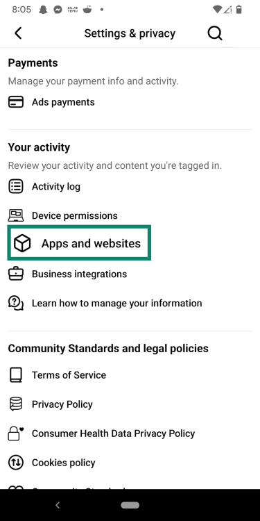 • Tap Disconnect specific activity to remove individual app/website connections.