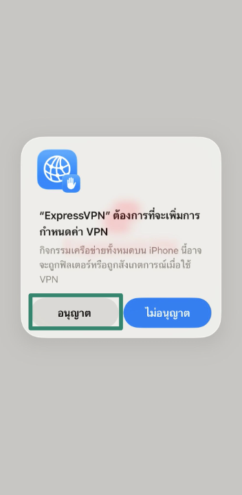 4. แตะ อนุญาต ตอนที่ปรากฏ เพื่ออนุญาต ExpressVPN และเพื่อเพิ่มการกำหนดค่า VPN